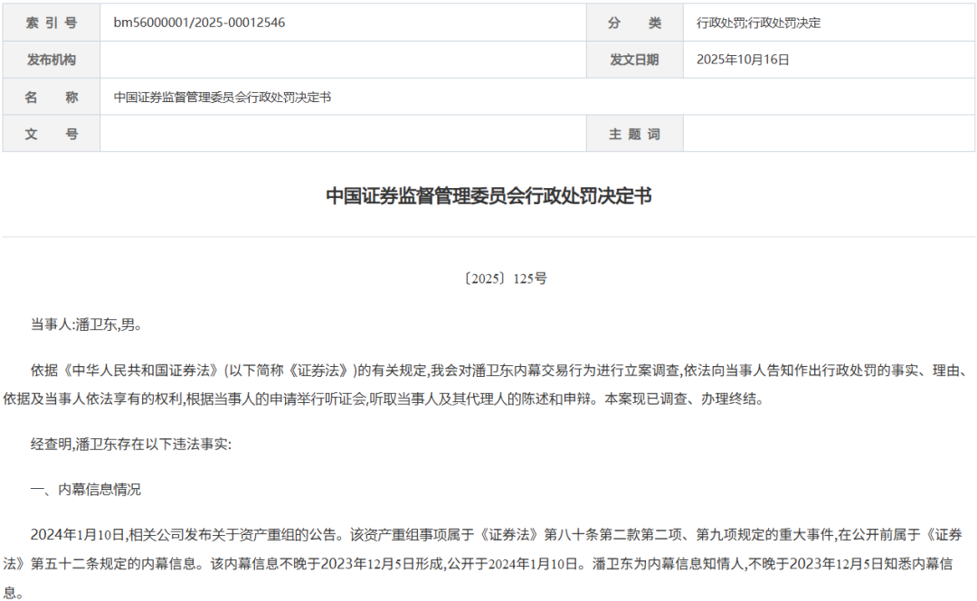 证监会认定,该行为显然具备内幕交易特征,并在调查中发现潘卫东“存在躲避推脱等不配合执法人员询问等情形”。